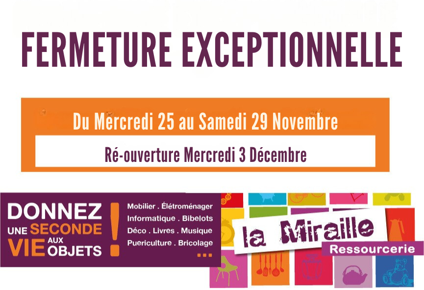 La Ressourcerie la Miraille sera ensuite fermée du 25 au 29 Novembre pour préparer la saison d’hiver !!!!