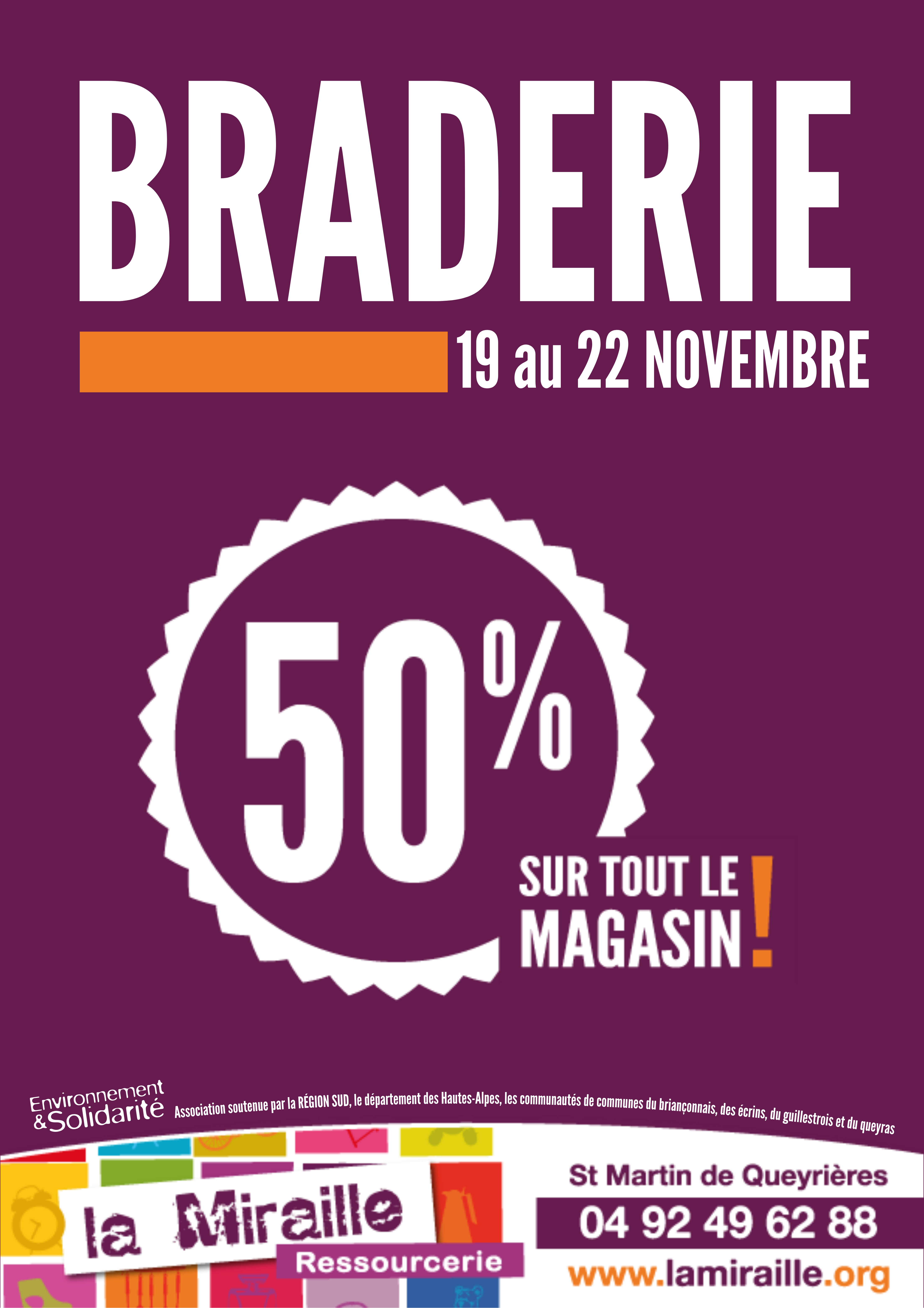 La Ressourcerie la Miraille organise sa braderie automnale du mercredi 19 au samedi 22 Novembre.