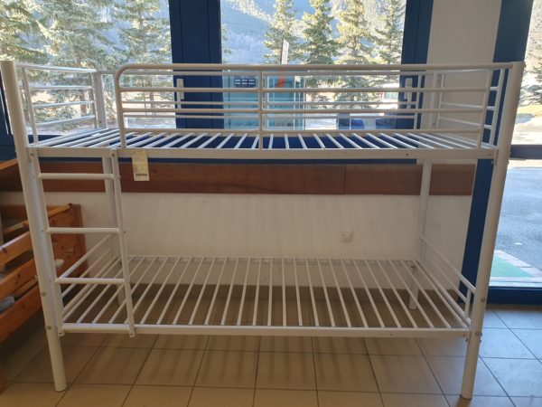 Lit superposés métallique blanc 8 disponibles bon état Prix : 80,00 € Taille: 190cm x 90cm (LxW) Description Voir également : Chaise collectivité jaune 8,00 € Chaise collectivité jaune 12,00 € Chaise collectivité 12,00 € Banc bois massif 20,00 € << Retour a la liste
